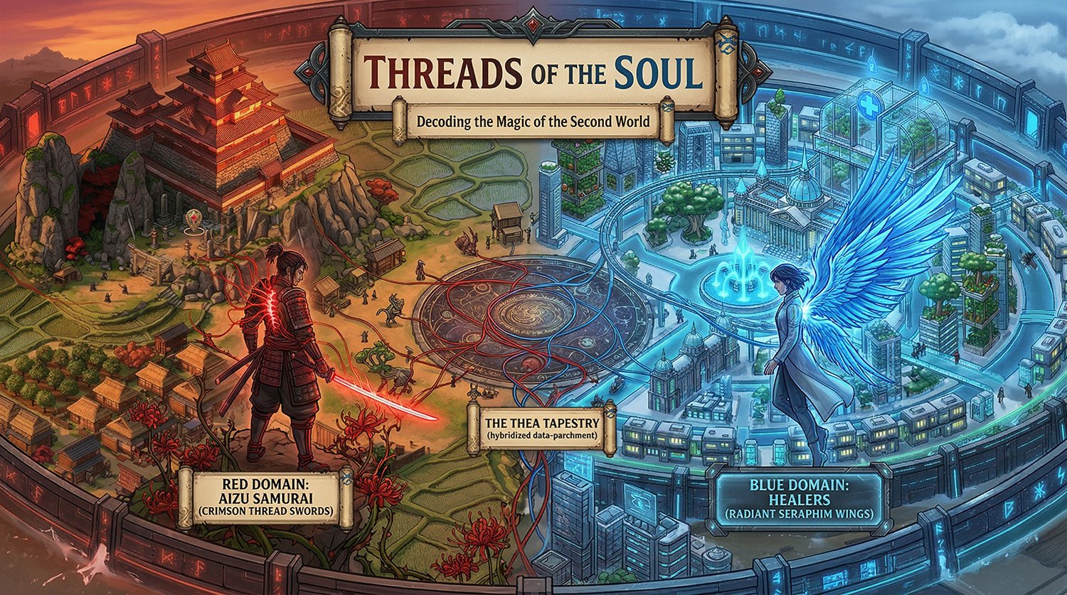 Death is not the end; it is an awakening to the Second World, a realm where souls from the First World manifest at their physical prime to unlock their true potential. This afterlife is fractured, and survival depends on the glowing, physical manifestations of your soul, known as "threads," and the nation you align yourself with. Explore the three great nations of the Thea Tapestry Alliance and the treacherous wasteland that divides them. Where do you belong?